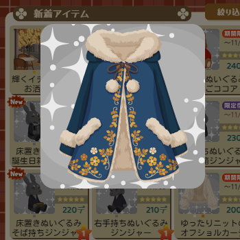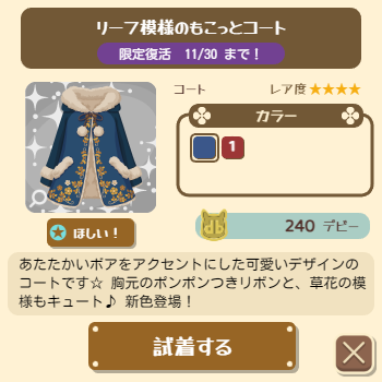 「リーフ模様のもこっとコート」はその名の通りリーフの模様が可愛いコートなのですが、いかんせん今までは画像が小さくて模様がよく見えませんでした。